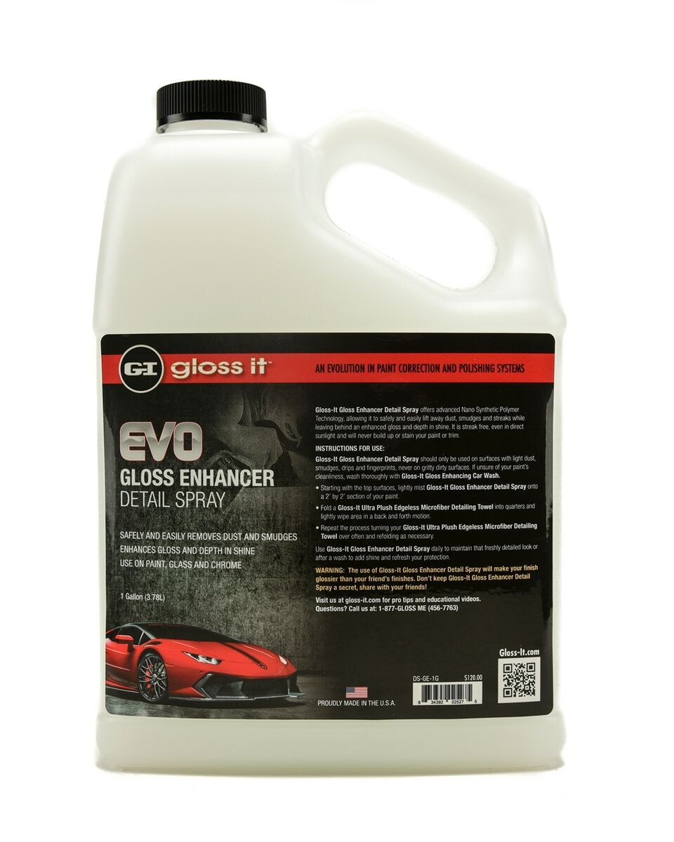 Gloss-It Gloss Envy Detail Spray is unlike any detail spray you have ever used. Thanks to advanced polymer technology Gloss- It Gloss Envy Detail Spray will safely and easily lift away dust, smudges and streaks while leaving behind an unbelievable depth in shine. It is streak free, even in direct sunlight and will never build up or stain your paint or trim.