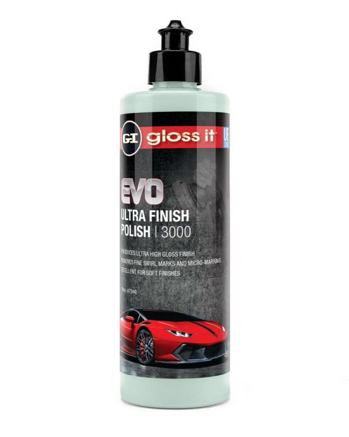 The first true heavy cut polish that truly diminishes on hard paint. Excellent for removing wet sanding scratches from 1000 to 2000 grit. Gloss-It EVO Cut Plus Polish 1000 offers the latest in paint polish technology and is a part of our revolutionary color matched EVO Paint Correction and Polishing System.