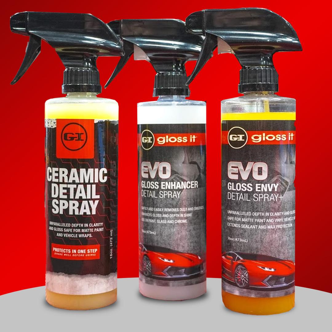 Gloss-It Gloss Envy Detail Spray + is unlike any detail spray you have ever used. Thanks to advanced polymer technology Gloss- It Gloss Envy Detail Spray + will safely and easily lift away dust, smudges and streaks while leaving behind an unbelievable depth in shine.